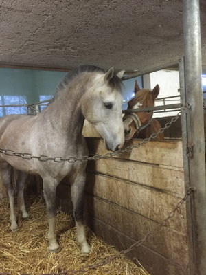 Die Pferde sind in einer Box untergebracht. Die Zeit im Auslauf und auf der Weide verbringen sie in der Herde, weswegen wir nur herdentaugliche Pferde bei uns aufnehmen können.