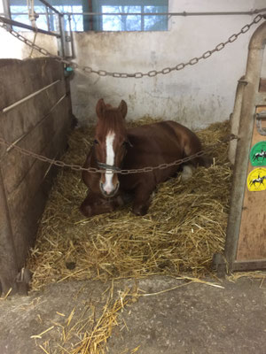 - Stroh wird 1x täglich nachgestreut, die Pferde auf Pellets haben eine Strohraufe in der Box.